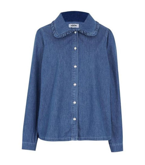Denim shirt – https://www.newlook.com/uk/womens/clothing/tops/blue-denim-ruffle-collar-shirt/p/671755840